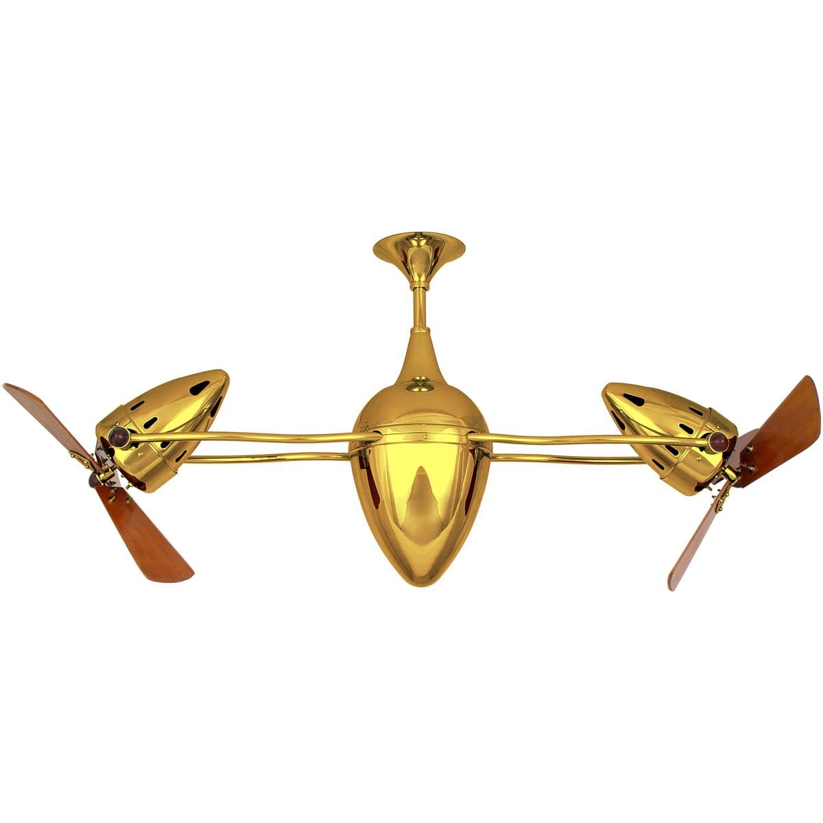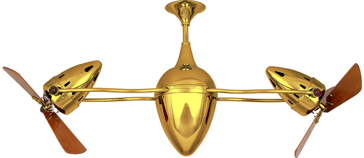 Matthews Fan AR-GOLD-WD Ar Ruthiane 360° dual headed rotational ceiling fan in Ouro (Gold) finish with solid sustainable mahogany wood blades.