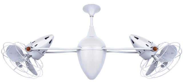 Matthews Fan AR-WH-MTL Ar Ruthiane 360° dual headed rotational ceiling fan in gloss white finish with metal blades.