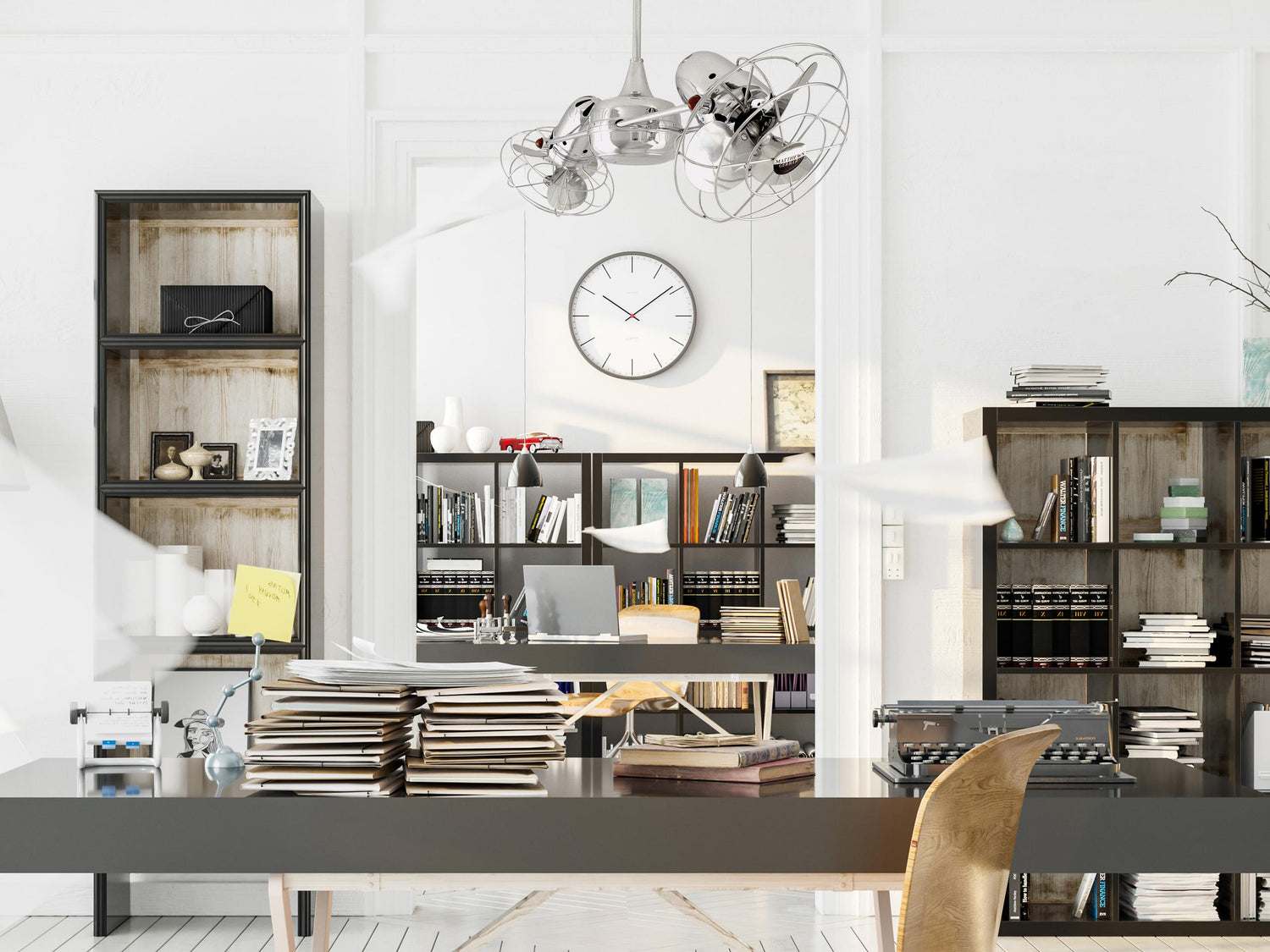 Few designs can match the timeless and sophisticated aesthetic of the Duplo-Dinamico 360° rotational fan. Other manufacturers have tried to reproduce this unique design, though all have proven to be of lesser quality and durability. The fan heads can be infinitely positioned in 180-degree arcs for optimum air movement; the greater the angles of the motors to the horizontal support rods (up or down), the faster the axial rotation. A slow, controlled axial rotation is achieved by both fan head position and fan blade speed. Matthews 360° rotational fans circulate heat and air conditioning more efficiently than traditional paddle fans. Constructed of cast aluminum, heavy spun and stamped steel, the Duplo carries a limited lifetime warranty.