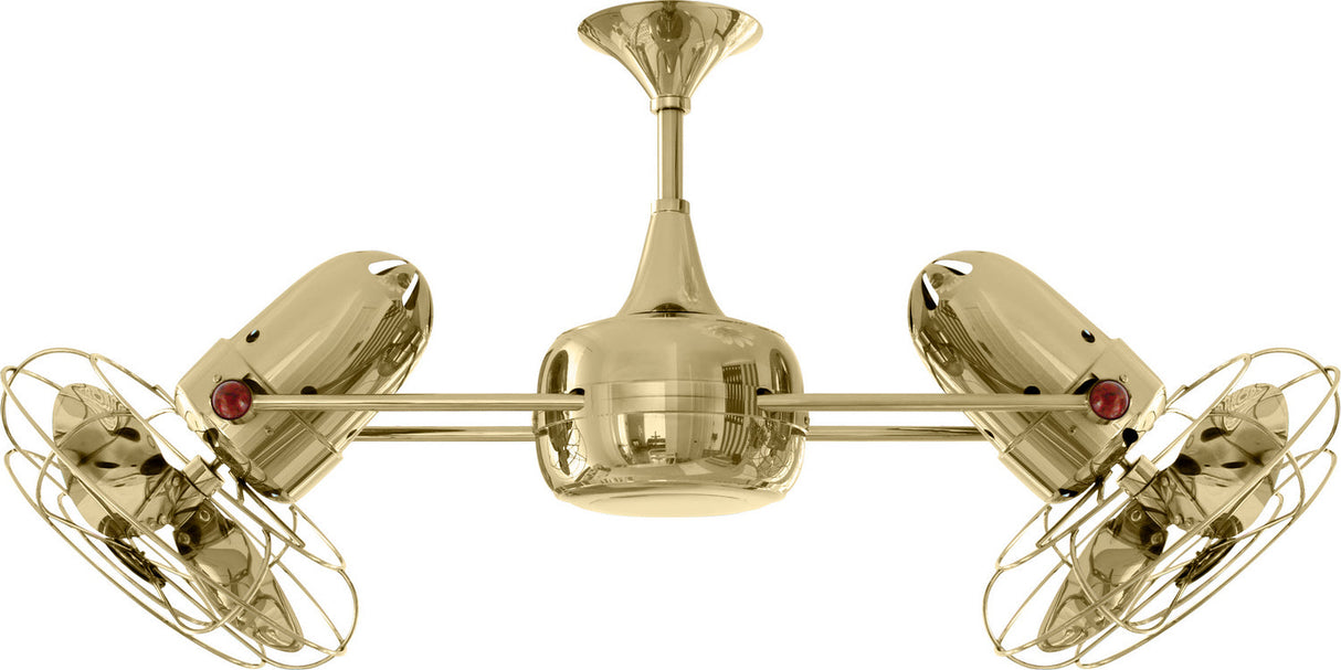 Matthews Fan DD-PB-MTL Duplo Dinamico 360” rotational dual head ceiling fan in Polished Brass finish with metal blades.