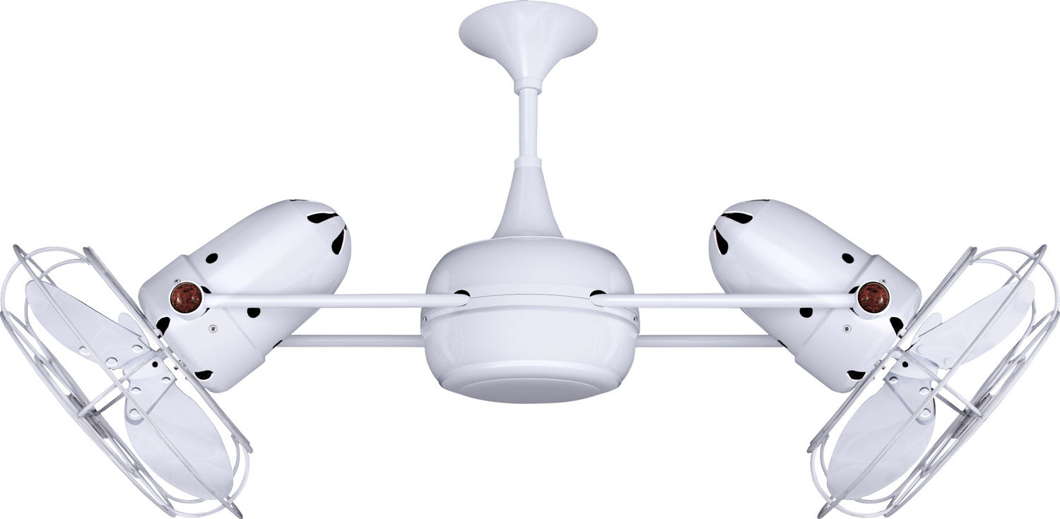 Matthews Fan DD-WH-MTL Duplo Dinamico 360” rotational dual head ceiling fan in Gloss White finish with metal blades.