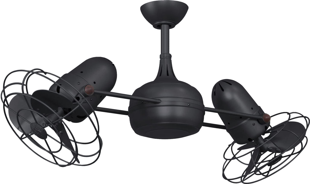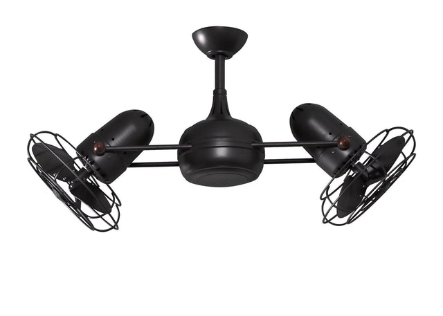 Matthews Fan DG-BK-MTL Dagny 360° double-headed rotational ceiling fan in Matte Black finish with metal blades.