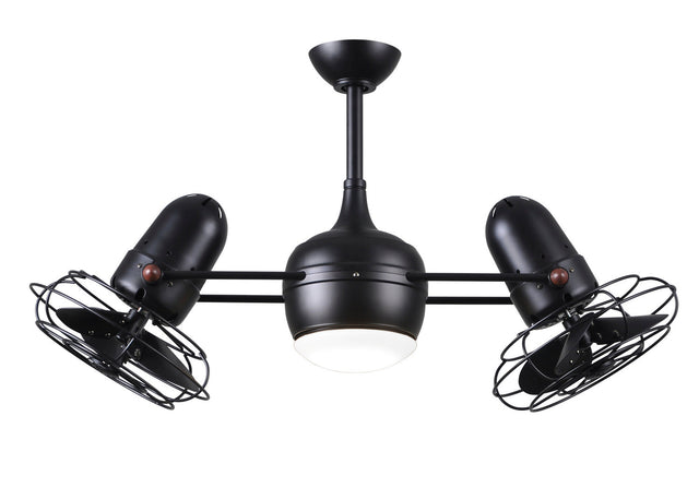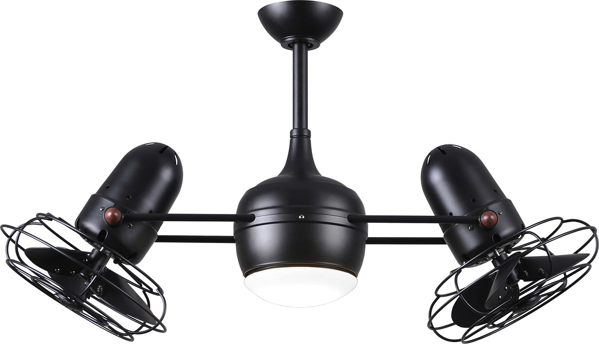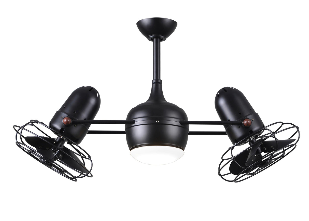 Matthews Fan DGLK-BK-MTL Dagny 360° double-headed rotational ceiling fan with light kit in Matte Black finish with metal blades.