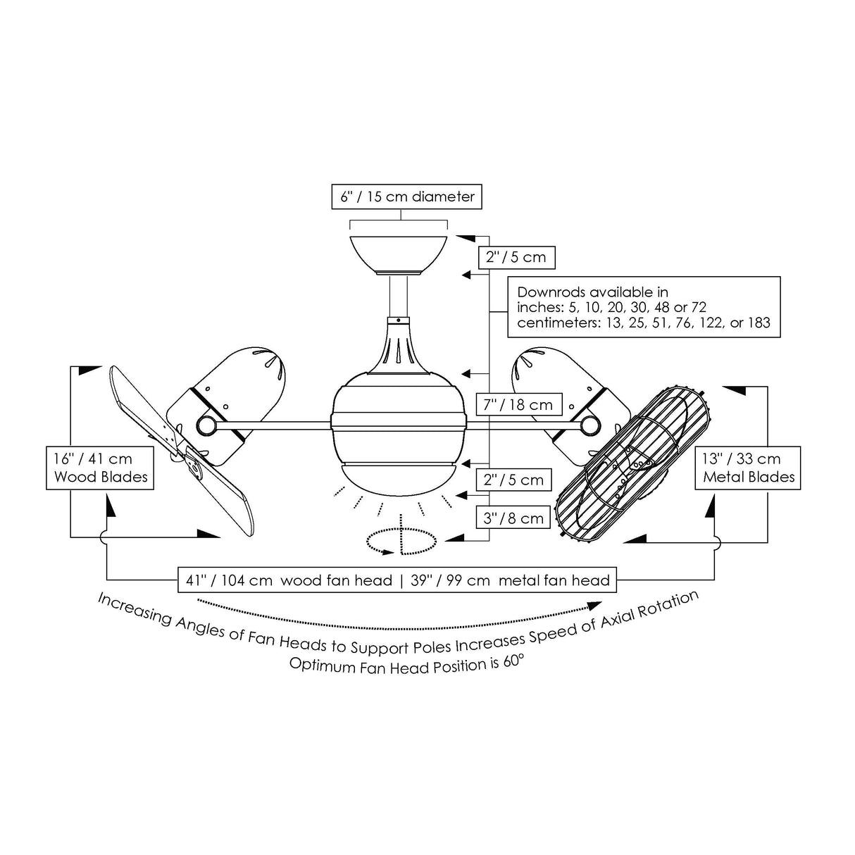 With clean, fluid lines, the Dagny LK 360° rotational fan is a striking centerpiece in any space. Its movement about its cylindrical center housing is smooth and quiet. Dagny LK’s dual fan heads can be infinitely positioned in 180-degree arcs for optimum and customized air movement. As the angle between the fan heads and the horizontal support rods is increased, so does the speed of Dagny LK’s axial rotation. Matthews rotational fans circulate heat and air conditioning more efficiently than traditional paddle fans. Constructed from cast aluminum and heavy stamped steel, the Dagny LK