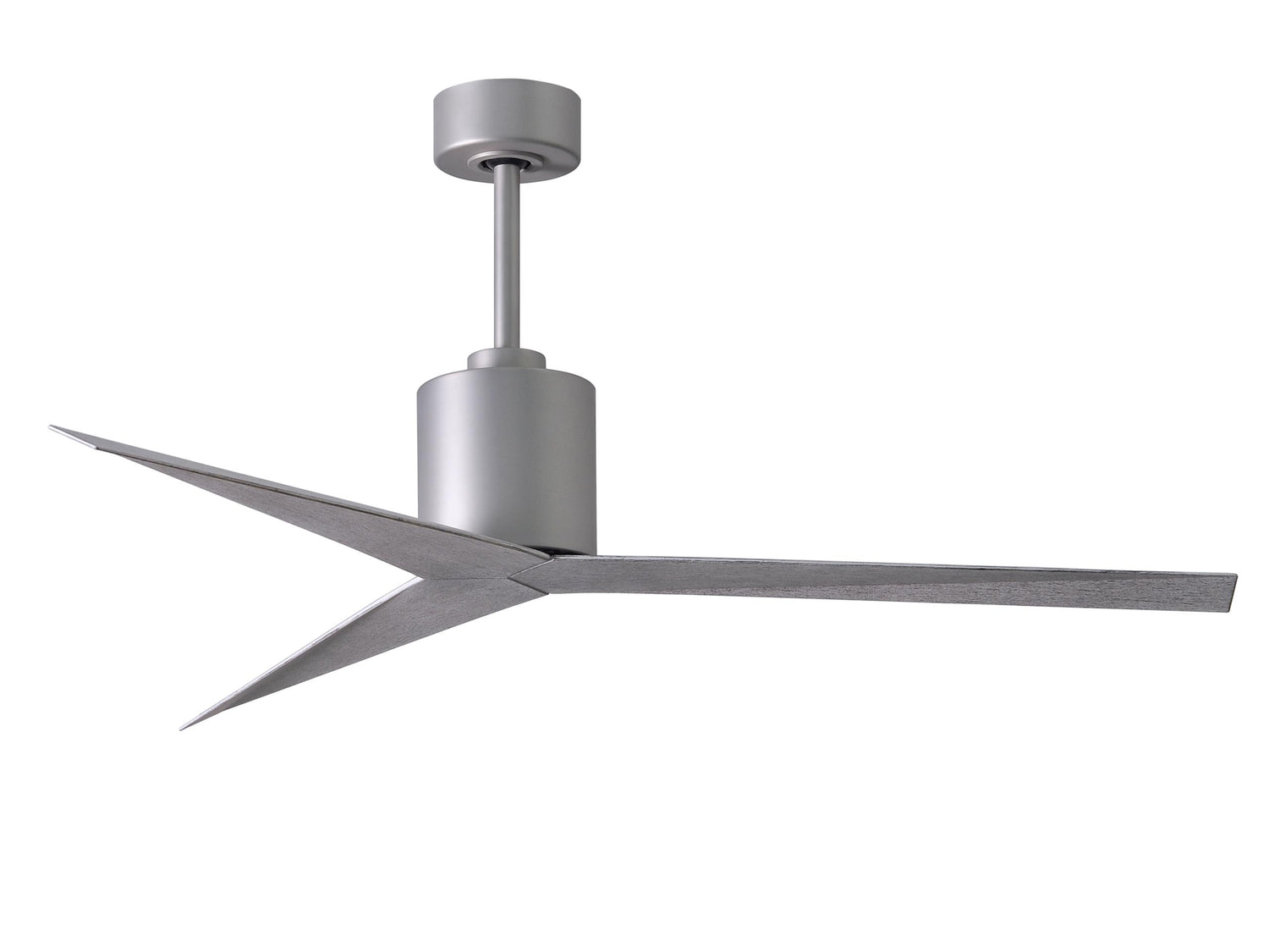 Matthews Fan EK-BN-BW Eliza 3-blade paddle fan in Brushed Nickel finish with barn wood all-weather ABS blades. Optimized for wet locations.