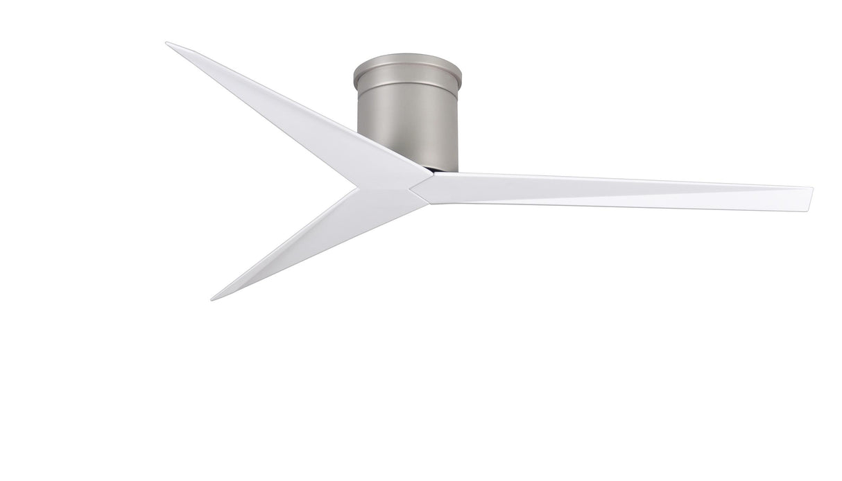 Matthews Fan EKH-BN-WH Eliza-H 3-blade ceiling mount paddle fan in Brushed Nickel finish with gloss white ABS blades.