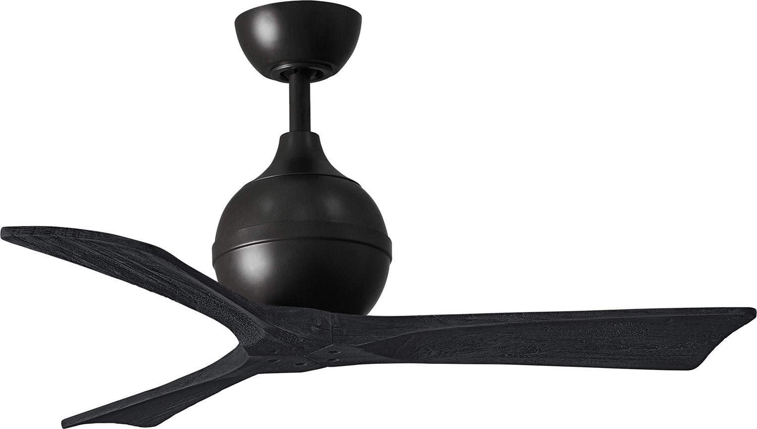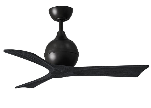 Matthews Fan IR3-BK-BK-42 Irene-3 three-blade paddle fan in Matte Black finish with 42" solid matte black wood blades.