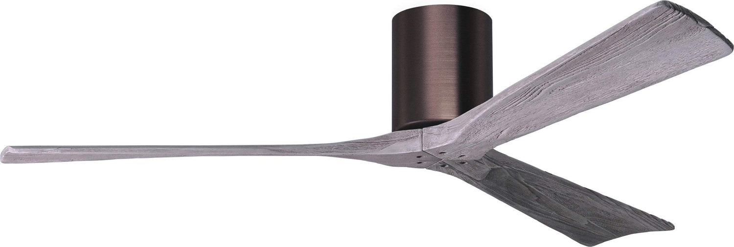 Matthews Fan IR3H-BB-BW-60 Irene-3H three-blade flush mount paddle fan in Brushed Bronze finish with 60” solid barn wood tone blades.