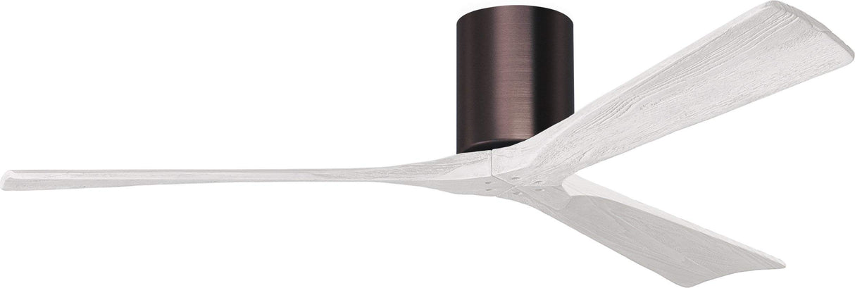 Matthews Fan IR3H-BB-MWH-60 Irene-3H three-blade flush mount paddle fan in Brushed Bronze finish with 60” solid matte white wood blades.