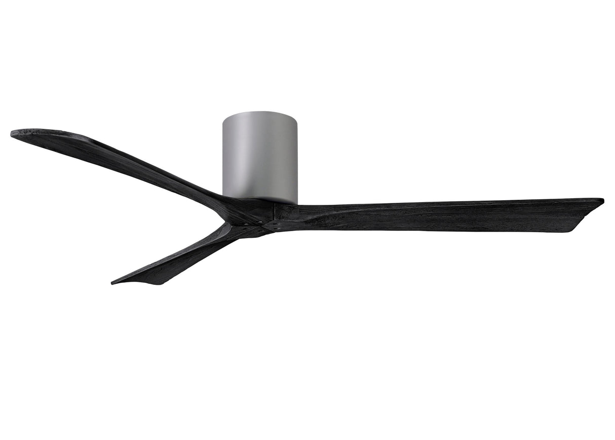 Matthews Fan IR3H-BN-BK-60 Irene-3H three-blade flush mount paddle fan in Brushed Nickel finish with 60” solid matte black wood blades.