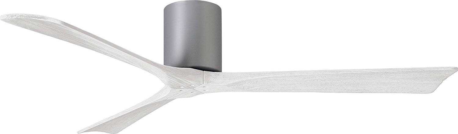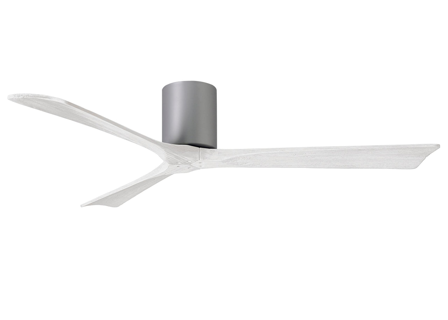 Matthews Fan IR3H-BN-MWH-60 Irene-3H three-blade flush mount paddle fan in Brushed Nickel finish with 60” solid matte white wood blades.