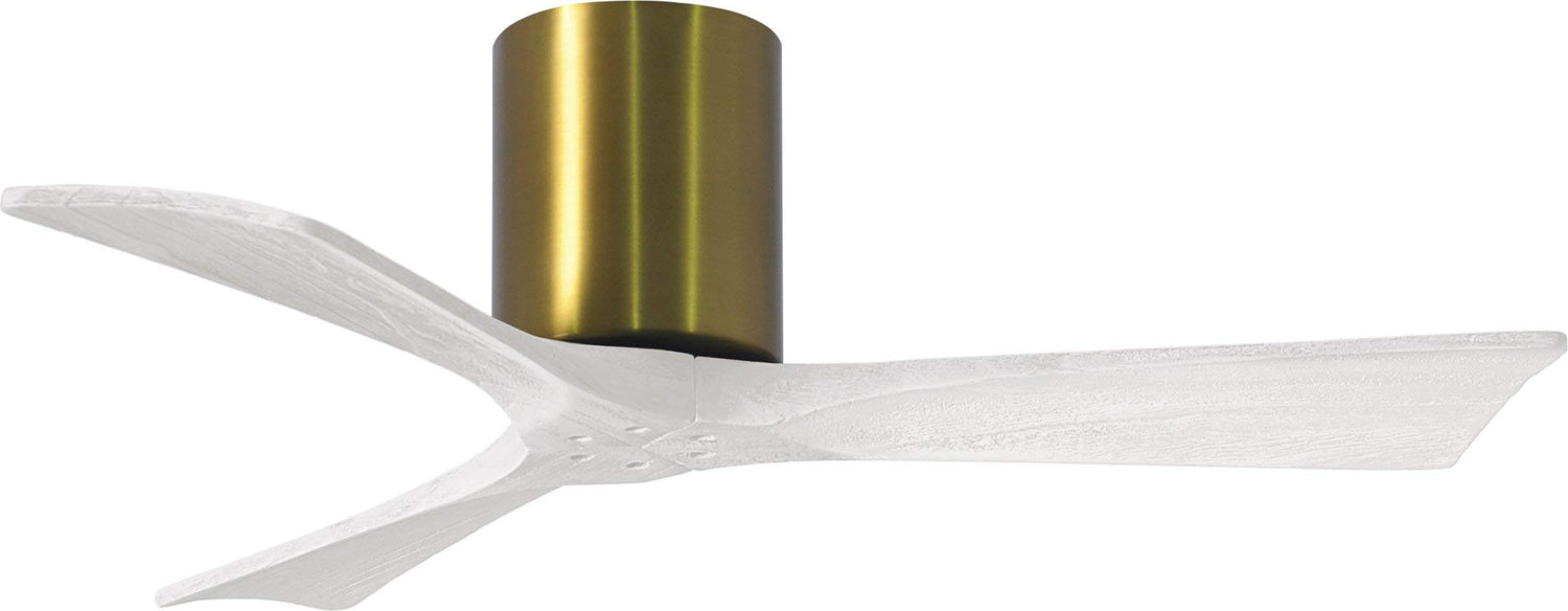 Matthews Fan IR3H-BRBR-MWH-42 Irene-3H three-blade flush mount paddle fan in Brushed Brass finish with 42” solid matte white wood blades.