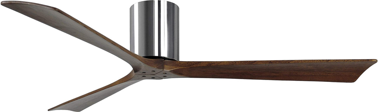 Matthews Fan IR3H-CR-WA-60 Irene-3H three-blade flush mount paddle fan in Polished Chrome finish with 60” solid walnut tone blades.