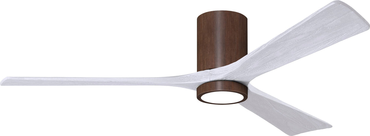 Matthews Fan IR3HLK-WN-MWH-60 Irene-3HLK three-blade flush mount paddle fan in Walnut finish with 60” solid matte white wood blades and integrated LED light kit.