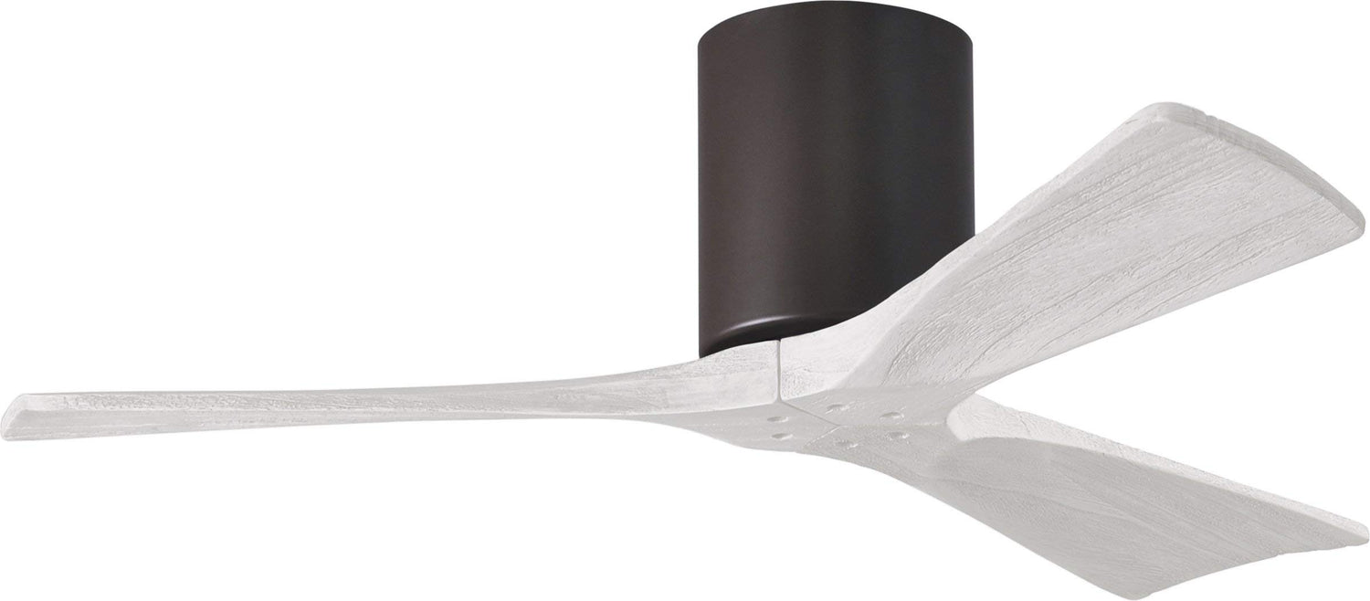 Matthews Fan IR3H-TB-MWH-42 Irene-3H three-blade flush mount paddle fan in Textured Bronze finish with 42” solid matte white wood blades.