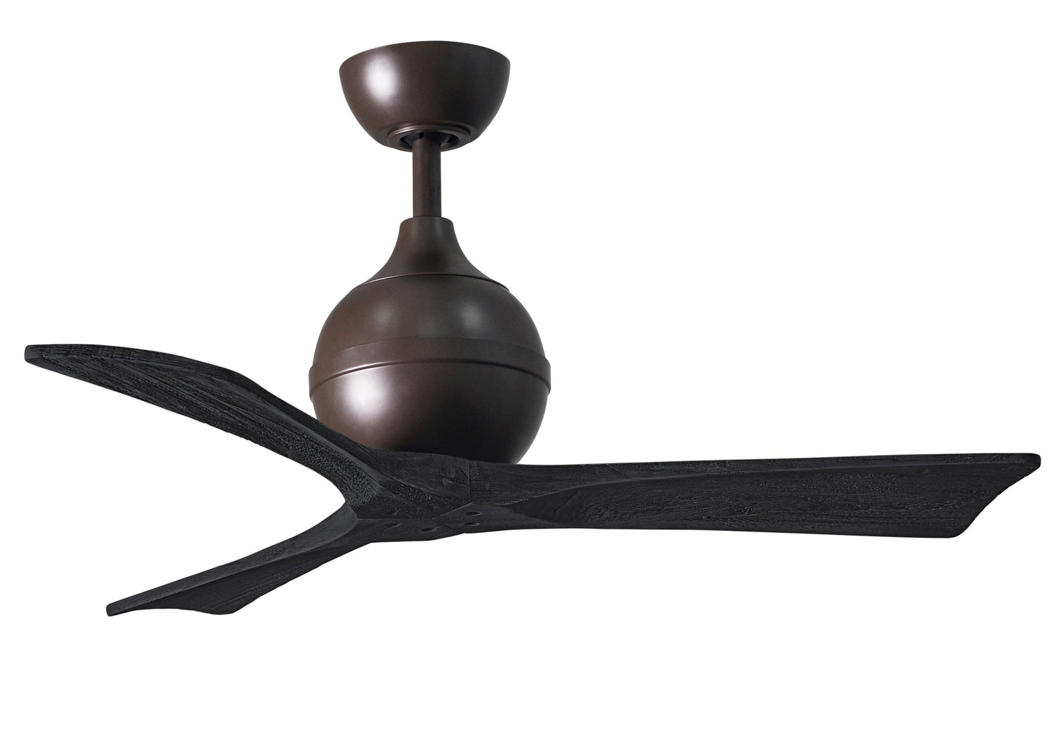 Matthews Fan IR3-TB-BK-42 Irene-3 three-blade paddle fan in Textured Bronze finish with 42" solid matte black wood blades.