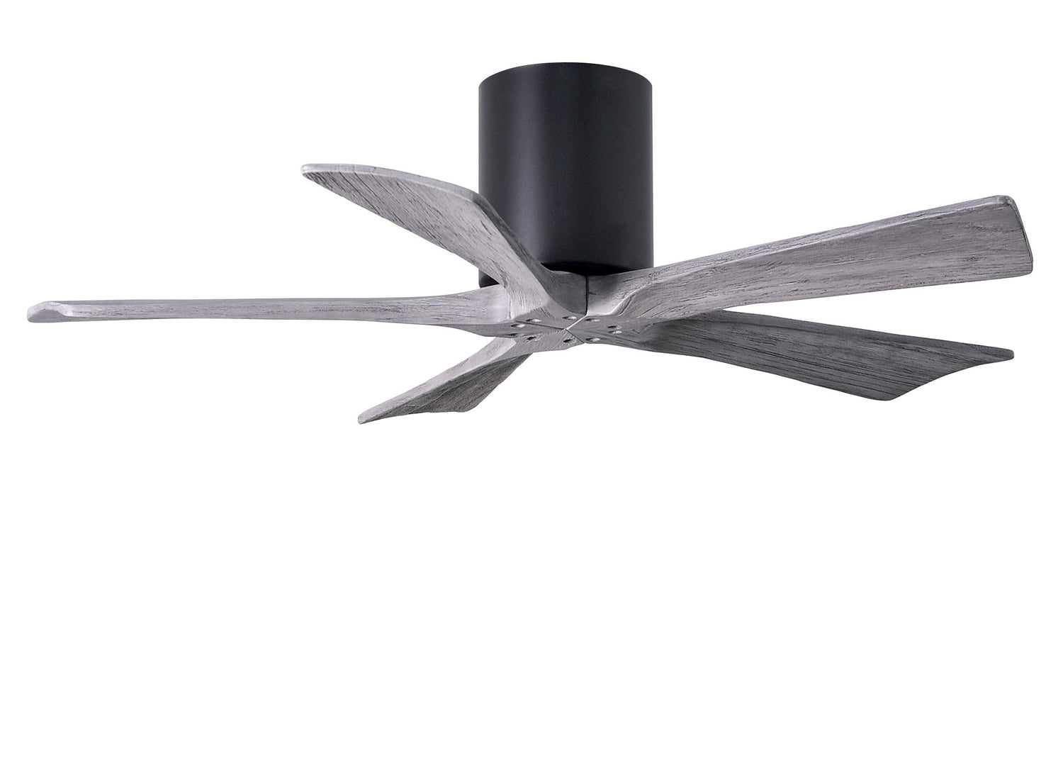 Matthews Fan IR5H-BK-BW-42 Irene-5H five-blade flush mount paddle fan in Matte Black finish with 42” solid barn wood tone blades.