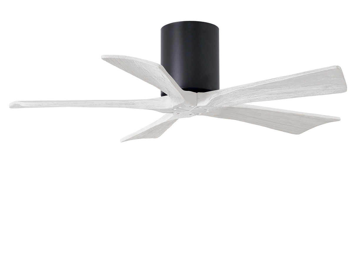 Matthews Fan IR5H-BK-MWH-42 Irene-5H five-blade flush mount paddle fan in Matte Black finish with 42” solid matte white wood blades.