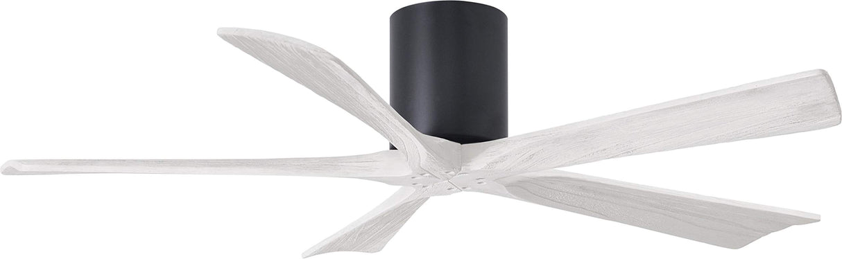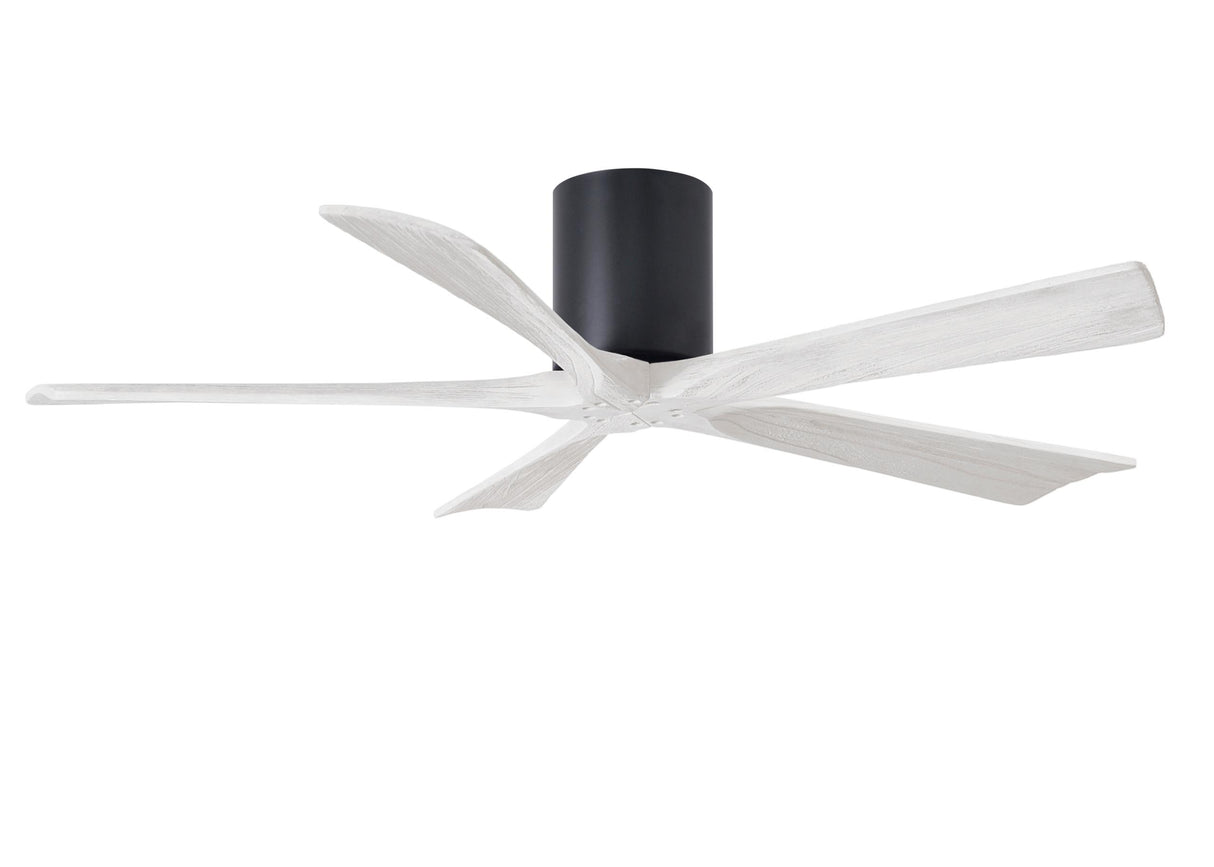 Matthews Fan IR5H-BK-MWH-52 Irene-5H five-blade flush mount paddle fan in Matte Black finish with 52” solid matte white wood blades.