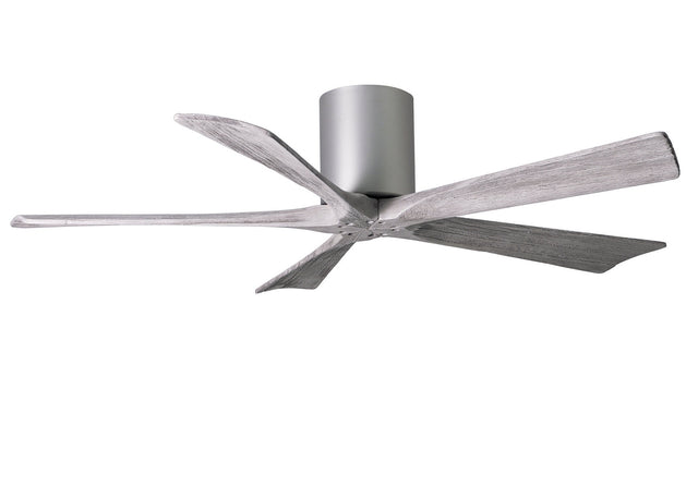 Matthews Fan IR5H-BN-BW-52 Irene-5H five-blade flush mount paddle fan in Brushed Nickel finish with 52” solid barn wood tone blades.