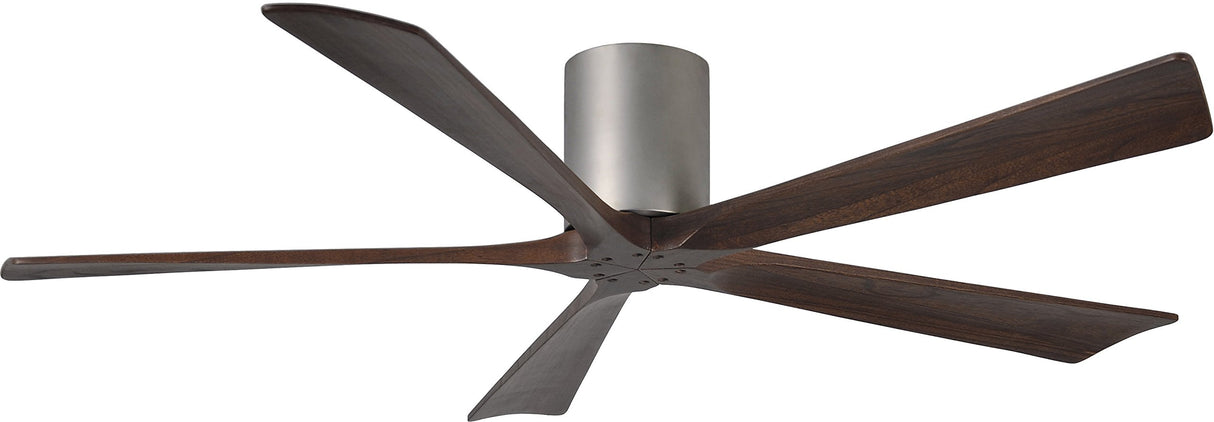 Matthews Fan IR5H-BN-WA-60 Irene-5H five-blade flush mount paddle fan in Brushed Nickel finish with 60” solid walnut tone blades.