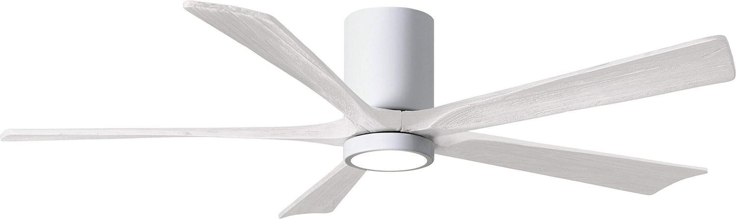 Matthews Fan IR5HLK-WH-MWH-60 IR5HLK five-blade flush mount paddle fan in Gloss White finish with 60” solid matte white wood blades and integrated LED light kit.
