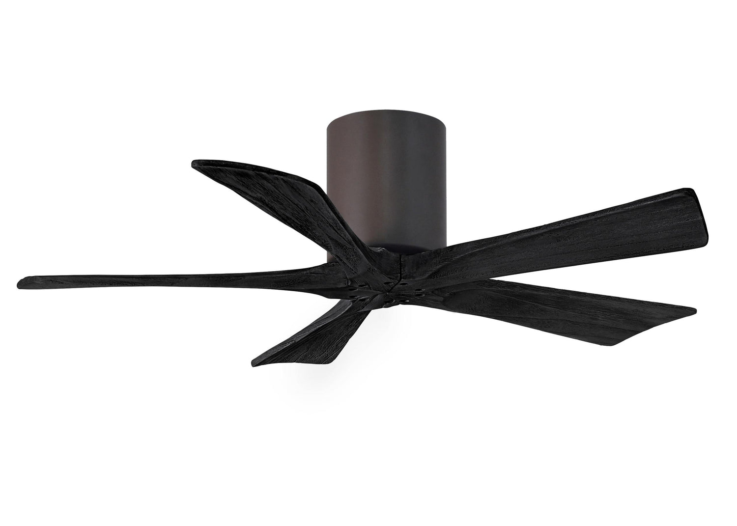 Matthews Fan IR5H-TB-BK-42 Irene-5H five-blade flush mount paddle fan in Textured Bronze finish with 42” solid matte black wood blades.