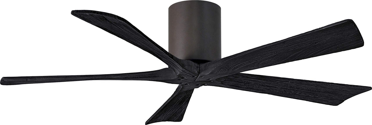 Matthews Fan IR5H-TB-BK-52 Irene-5H five-blade flush mount paddle fan in Textured Bronze finish with 52” solid matte black wood blades.