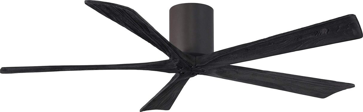 Matthews Fan IR5H-TB-BK-60 Irene-5H five-blade flush mount paddle fan in Textured Bronze finish with 60” solid matte black wood blades.