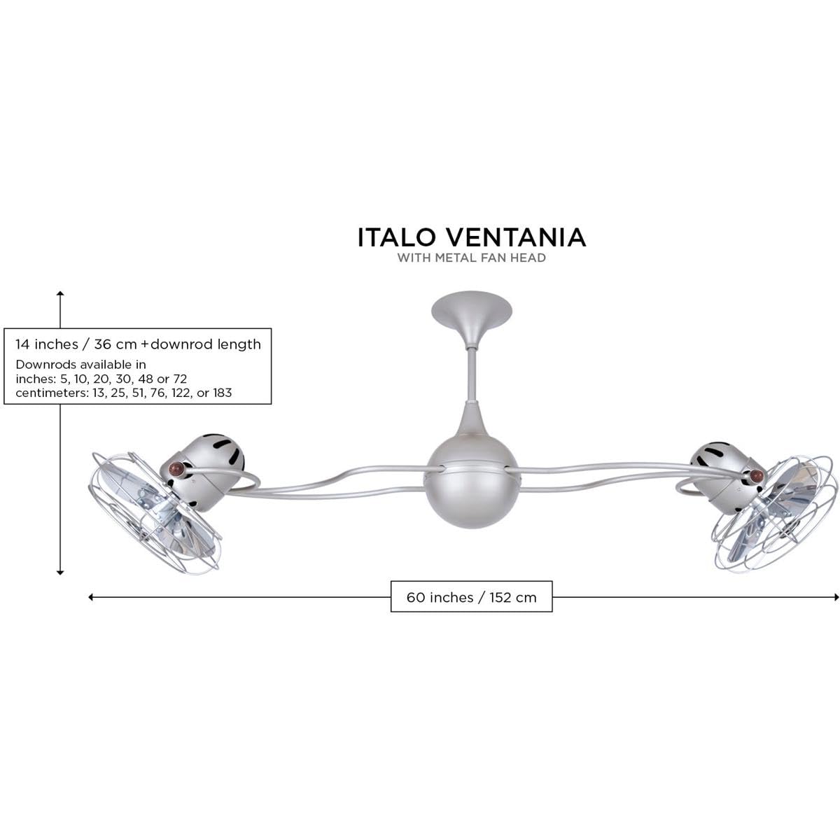 Matthews Fan IV-BK-MTL Italo Ventania 360° dual headed rotational ceiling fan in Matte Black finish with metal blades.