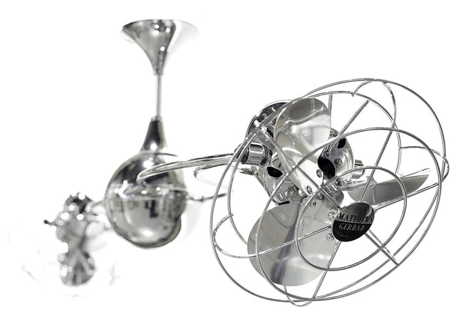 Matthews Fan IV-CR-MTL-DAMP Italo Ventania 360° dual headed rotational ceiling fan in polished chrome finish with metal blades for damp location.