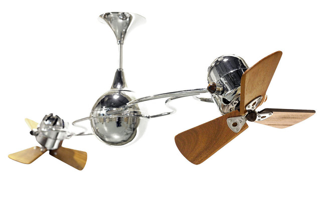 Matthews Fan IV-CR-WD-DAMP Italo Ventania 360° dual headed rotational ceiling fan in polished chrome finish with solid sustainable mahogany wood blades for damp location.