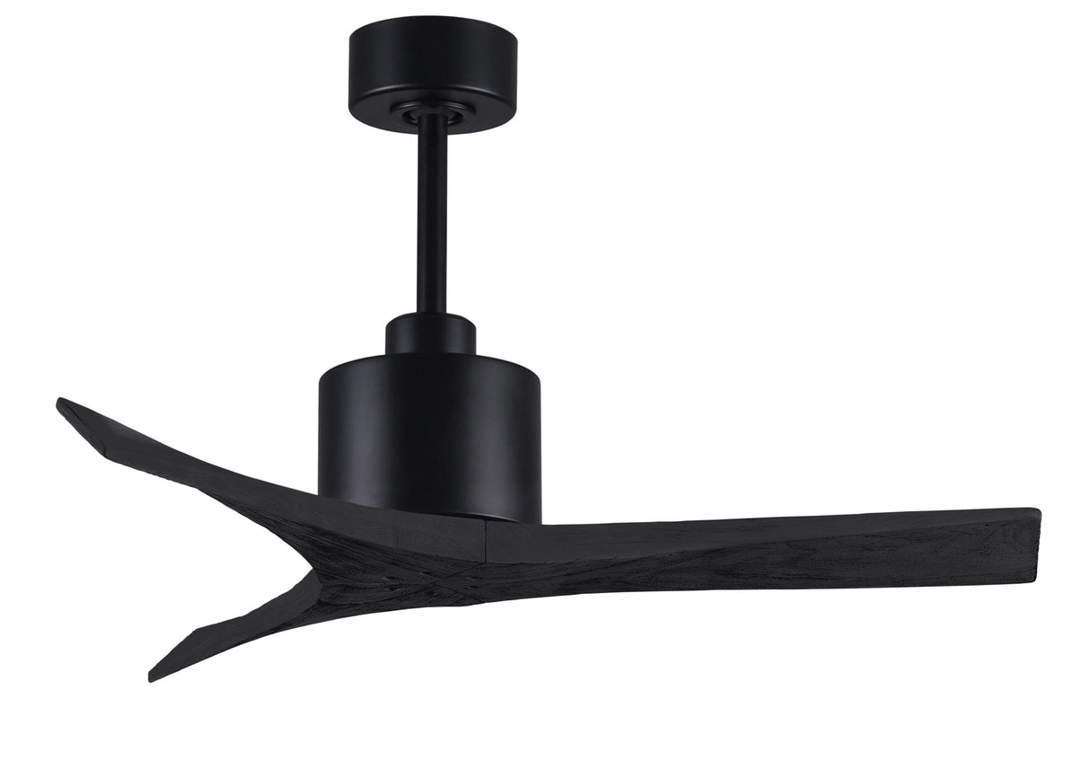 Matthews Fan MW-BK-BK-42 Mollywood 6-speed contemporary ceiling fan in Matte Black finish with 42” solid matte black wood blades