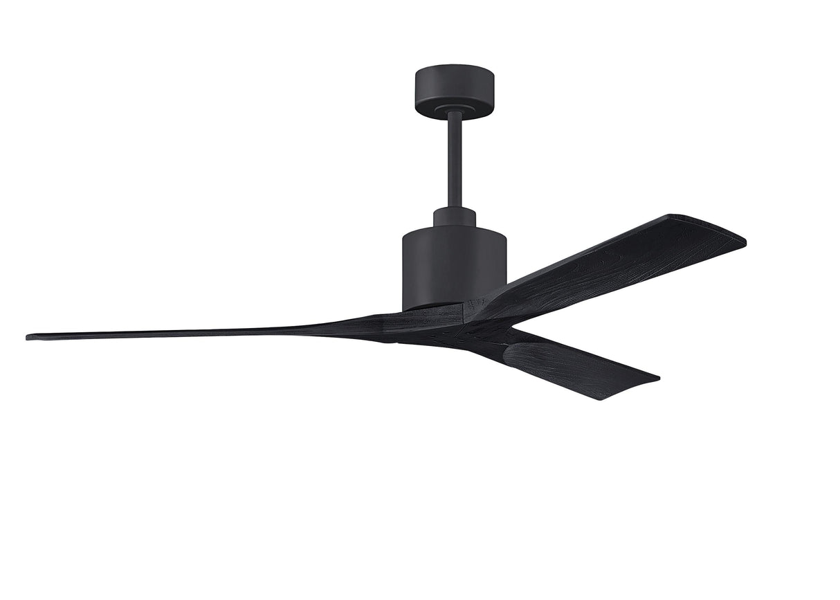 Matthews Fan NK-BK-BK-60 Nan 6-speed ceiling fan in Matte Black finish with 60” solid matte black wood blades