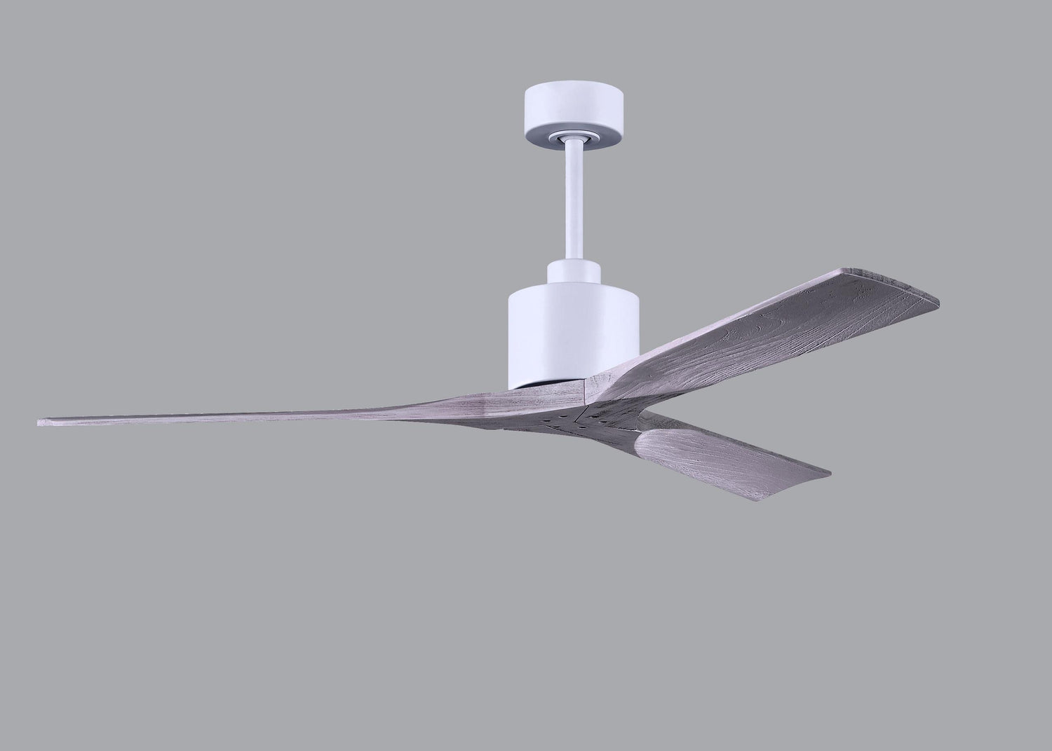 Matthews Fan NK-MWH-BW-60 Nan 6-speed ceiling fan in Matte White finish with 60” solid barn wood tone wood blades