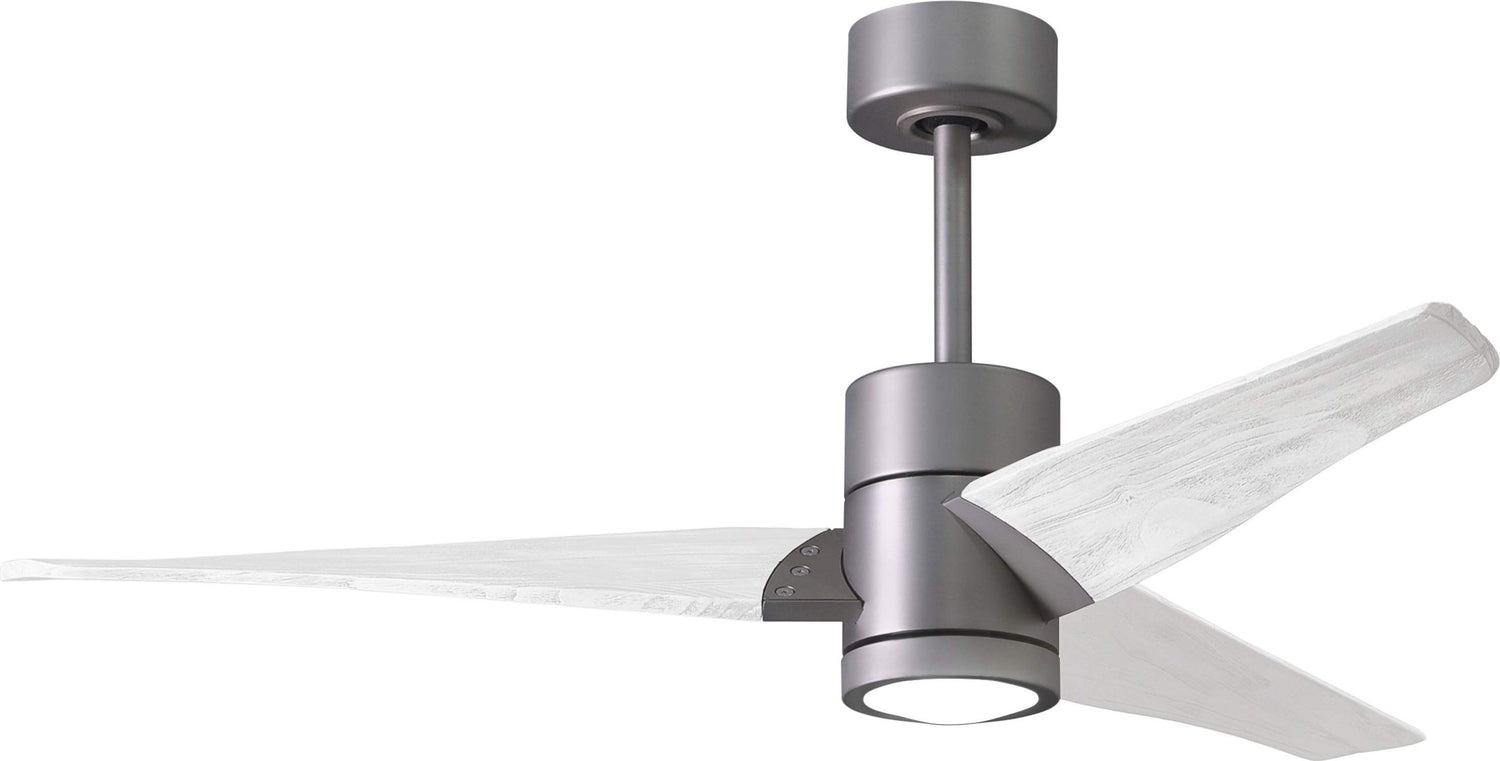Matthews Fan SJ-BN-MWH-52 Super Janet three-blade ceiling fan in Brushed Nickel finish with 52” solid matte white wood blades and dimmable LED light kit