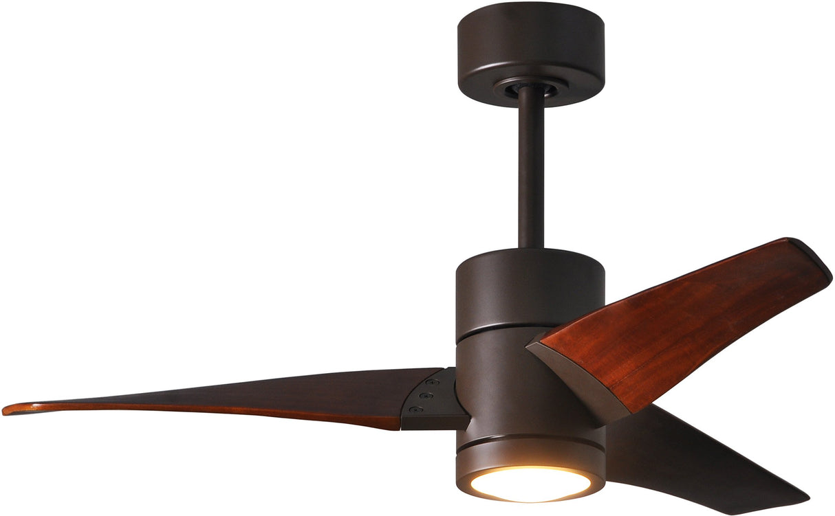 Matthews Fan SJ-TB-WN-42 Super Janet three-blade ceiling fan in Textured Bronze finish with 42” solid walnut tone blades and dimmable LED light kit