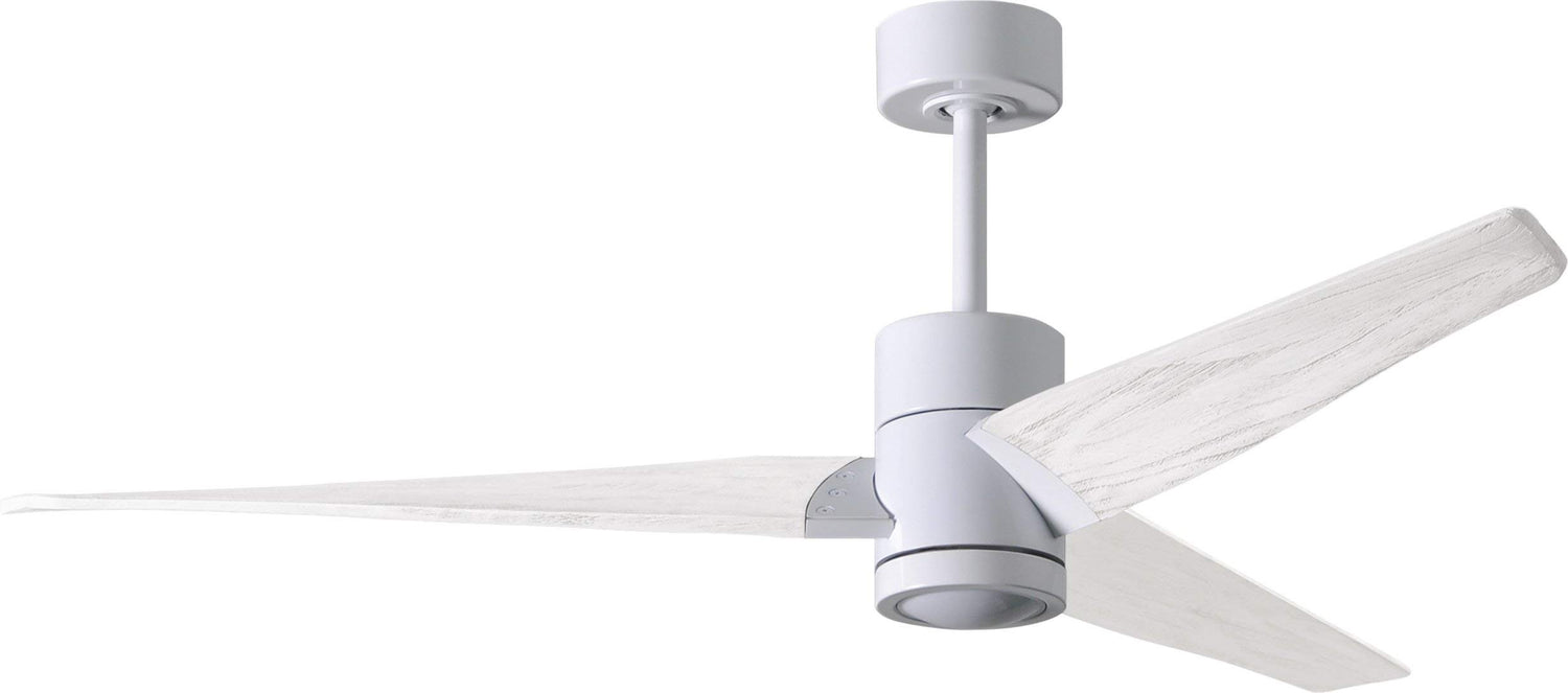 Matthews Fan SJ-WH-MWH-60 Super Janet three-blade ceiling fan in Gloss White finish with 60” solid matte white wood blades and dimmable LED light kit