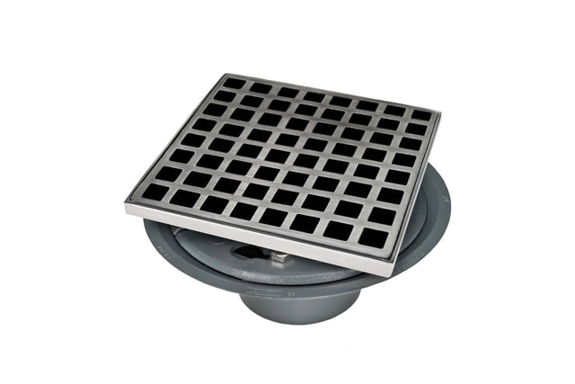 Infinity Drain QD 5-2I 5” x 5” QD 5 - Strainer - Squares Pattern & 2" Throat w/Cast Iron Drain Body 2” Outlet