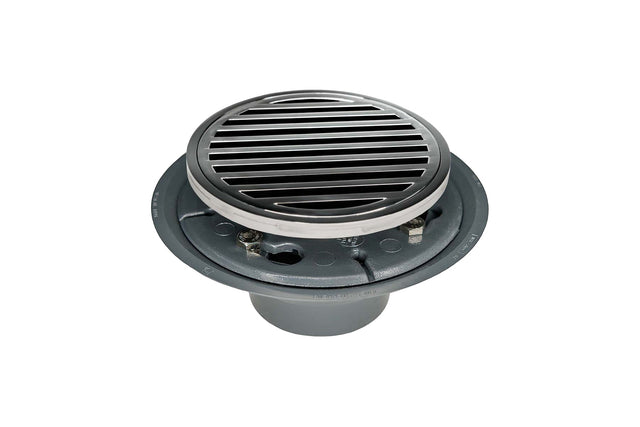 Infinity Drain RND 5-2I 5” x 5” RND 5 - Strainer - Lines Pattern & 2" Throat w/Cast Iron Drain Body 2” Outlet