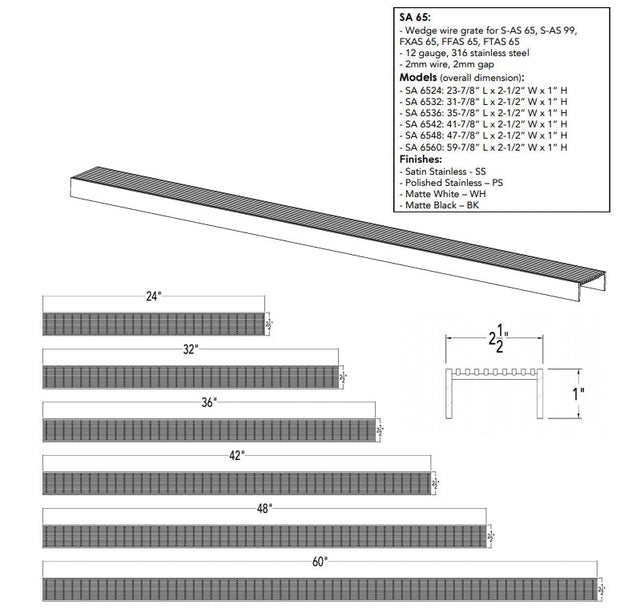 Infinity Drain SA 6560 60" SA 65 Grate 1" High