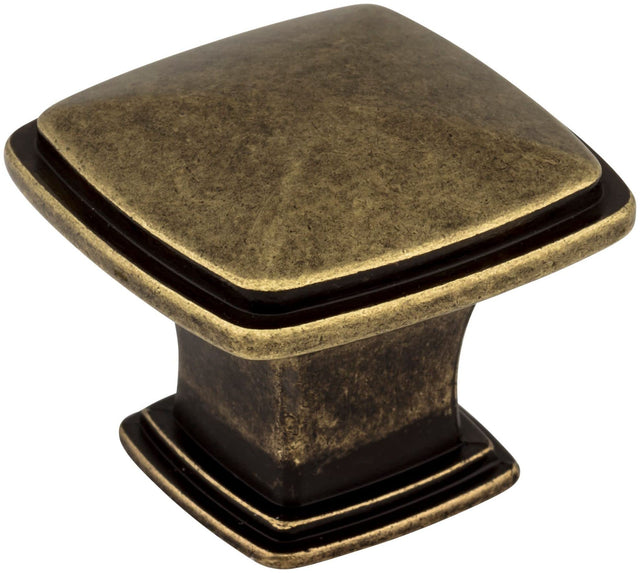 Jeffrey Alexander 1091AEM 1-3/16" Overall Length Lightly Distressed Antique Brass Square Milan 1 Cabinet Knob