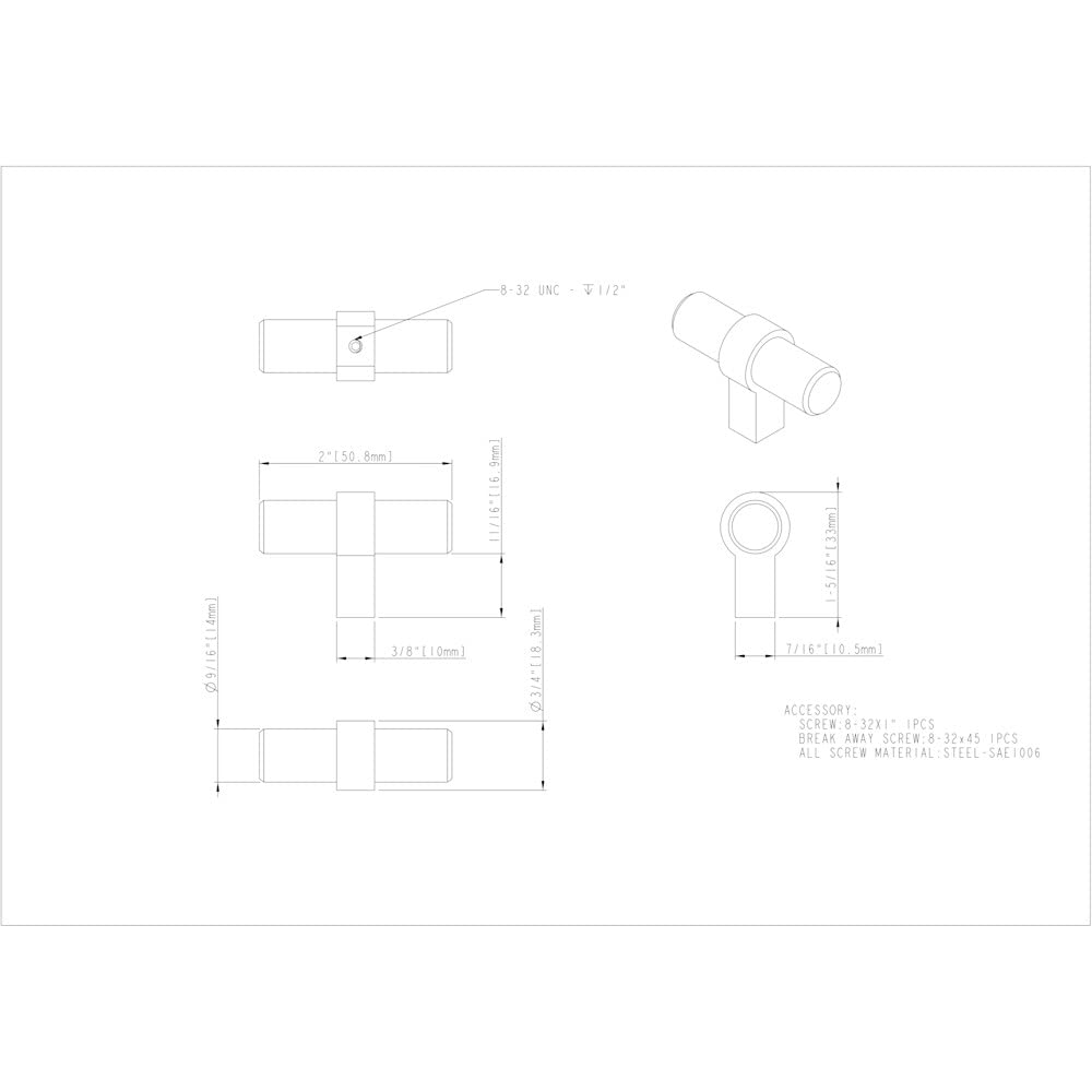 The simple, clean lines of this beveled bar pull allow Key Grande to blend with any cabinet style in kitchens, baths, and even laundry rooms. This 2" overall length Satin Nickel Jeffrey Alexander cabinet "T" knob has an added strap detail that offers a refined upgrade to the traditional "T" knob. These sophisticated knobs and matching pulls are available in four additional finishes, including trendy mixed finishes. Each item is individually wrapped to protect the item from damage. Attachment hardware is included.