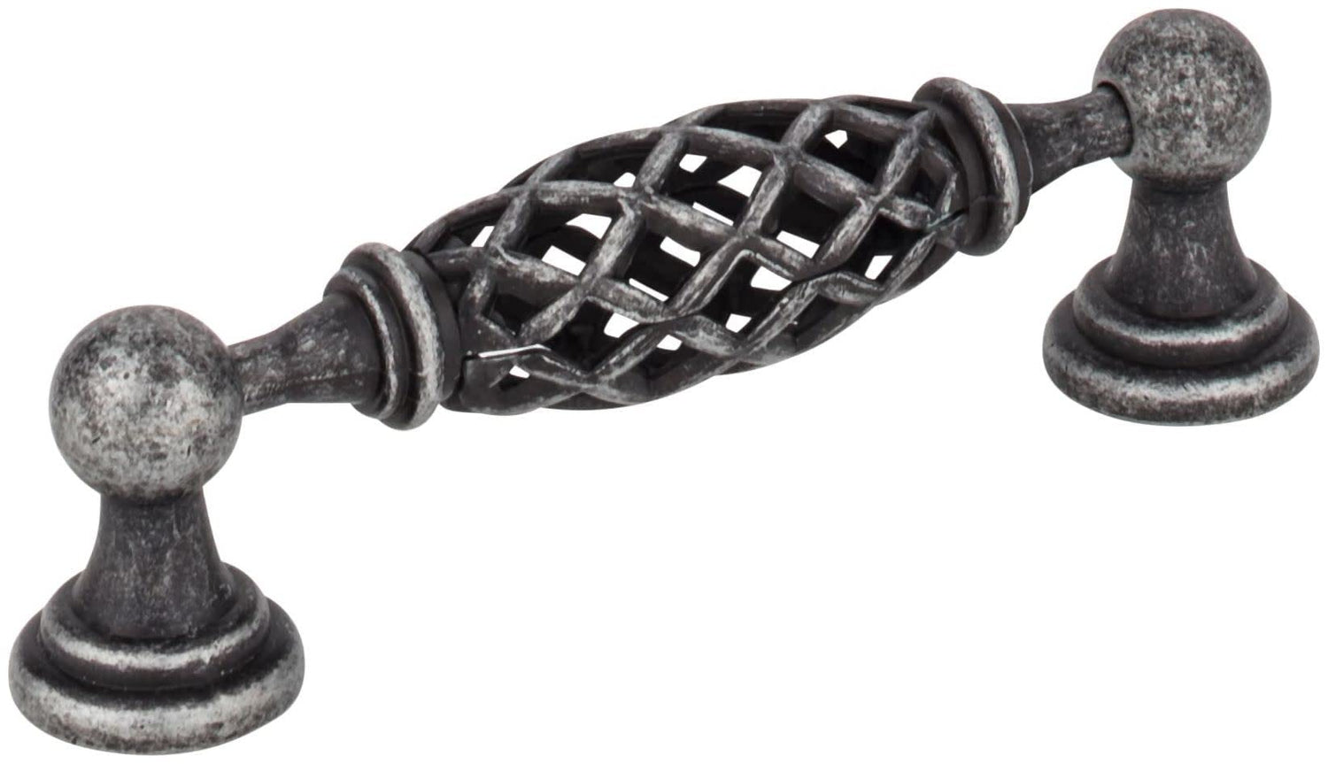 Jeffrey Alexander 749-96B-SIM 96 mm Center-to-Center Distressed Antique Silver Birdcage Tuscany Cabinet Pull