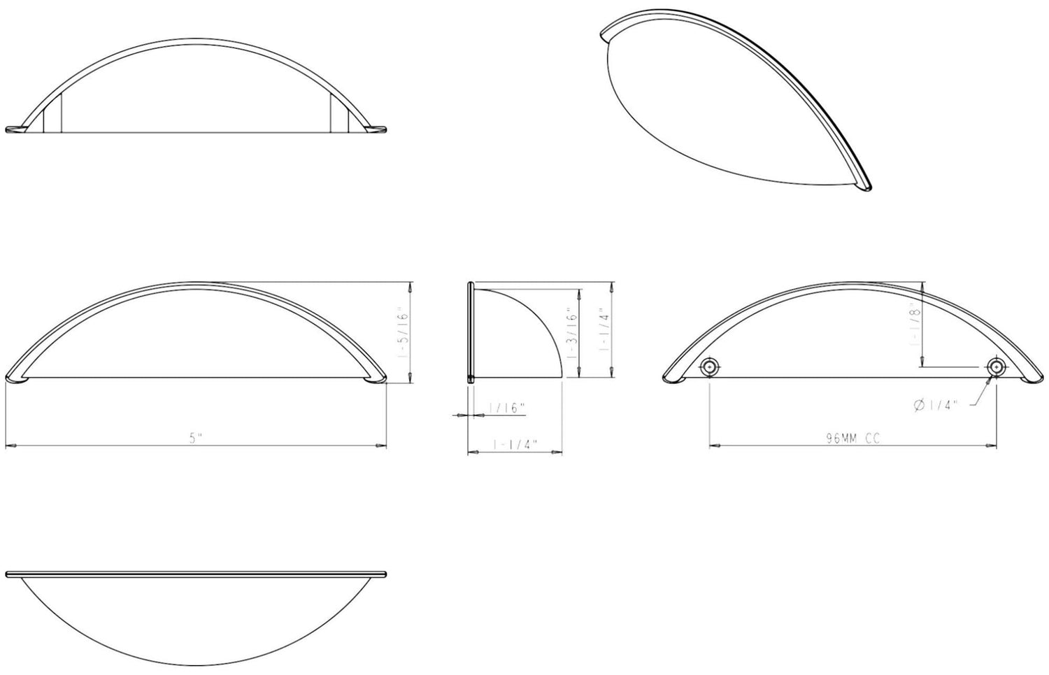 From the ManufacturerFinish Options:Antique Brass, Center to Center:3.78' (96mm) Centers 5' Shaker Cup Pull (Cabinet Pull). Holes are 96mm center-to-center. Packaged with two 8/32' x 1' screws.