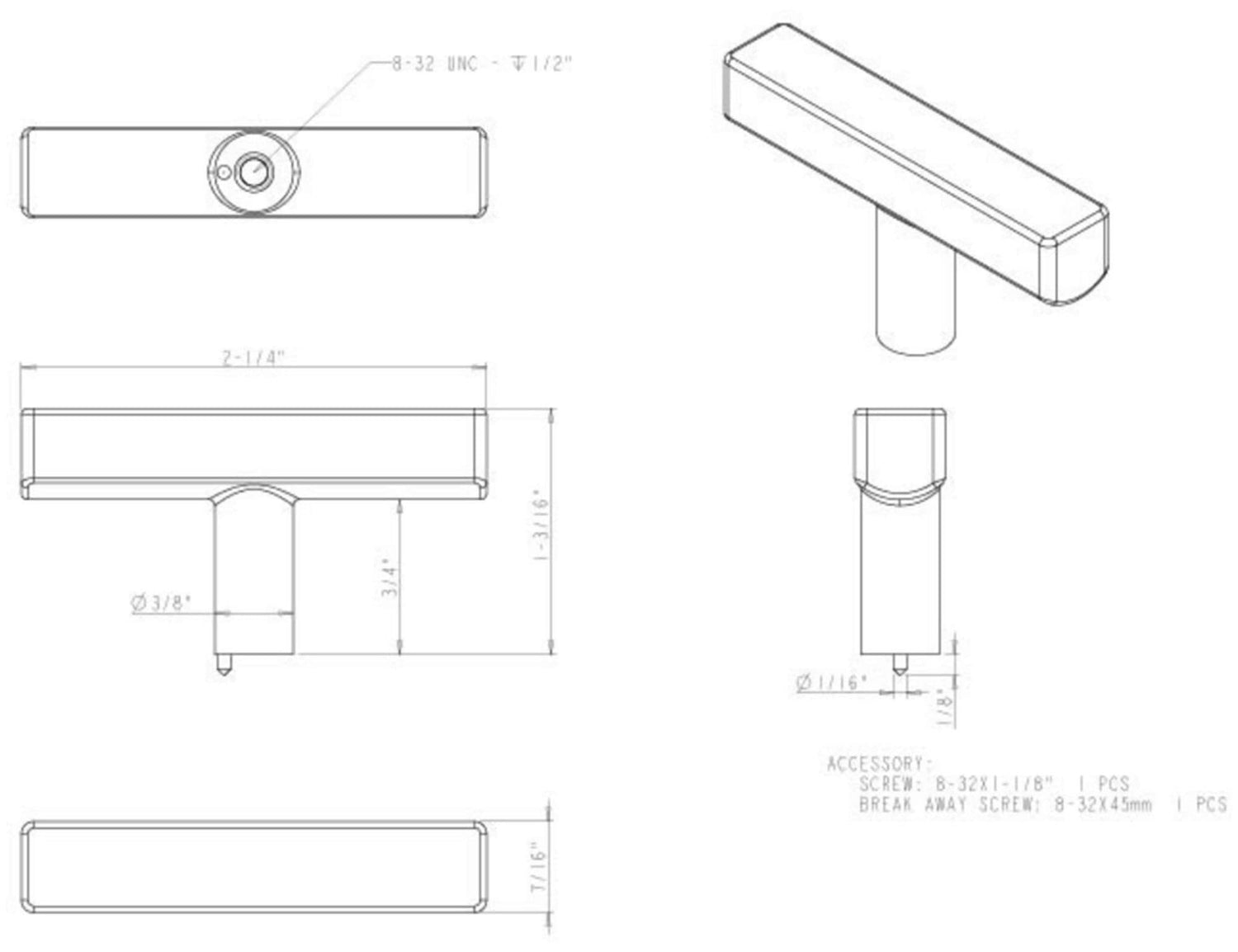 Dominique fuses daring lines with a delicate contour, resulting in a perfect balance of grace and power. This large 2-1/4" overall length Polished Chrome cabinet "T" knob is also available in 2" and is the perfect complement to any modern or contemporary design. This Jeffrey Alexander collection offers an abundance of coordinating shape options including a 1-1/8" square knob, five standard pull lengths and, two appliance pull lengths. Seven top trending finishes, including Matte Black, Brushed Gold, and Satin Bronze, make this collection is a winning choice for any kitchen, bath or closet. Each item is individually wrapped to protect the item from damage. Attachment hardware is included.