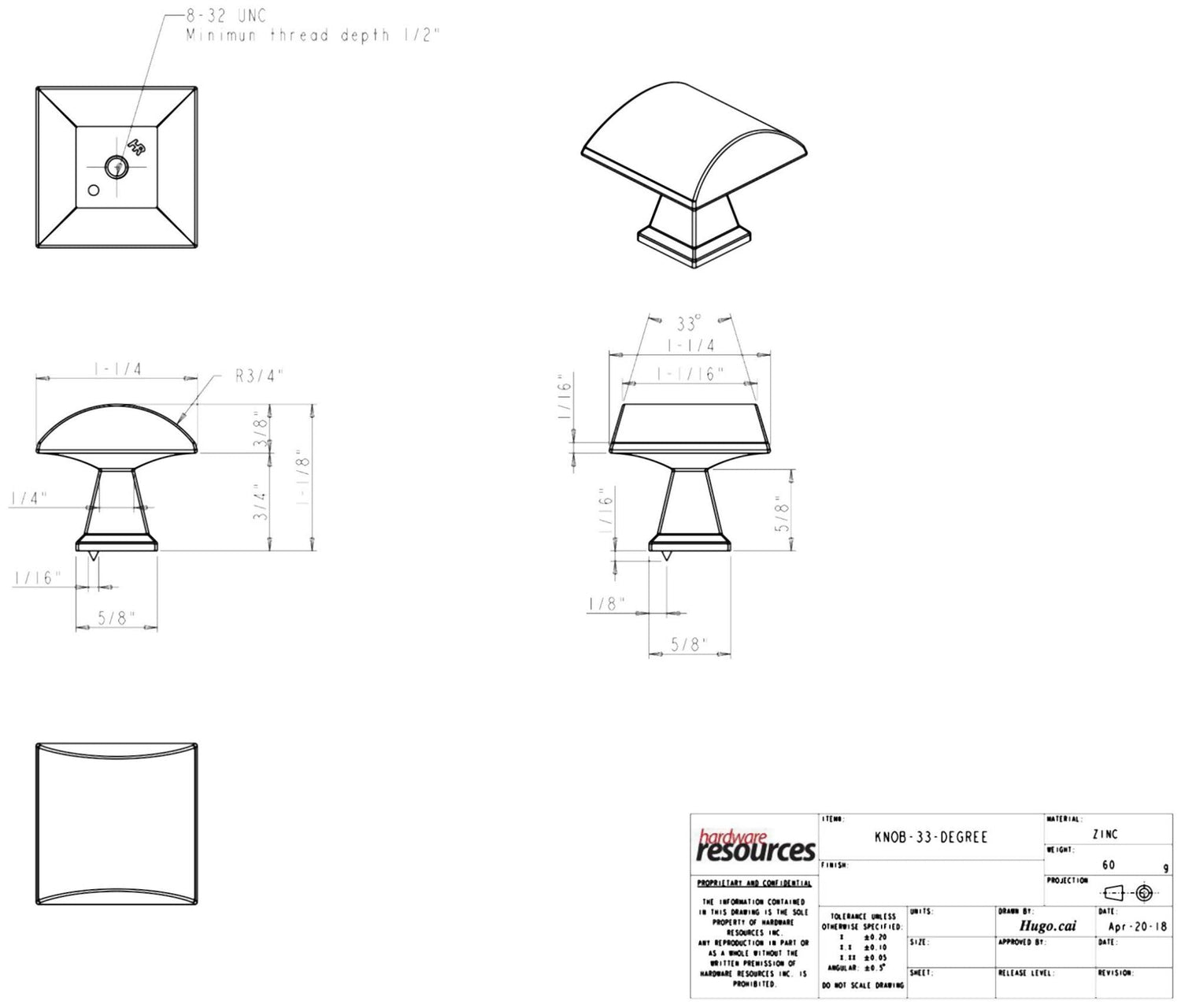Features: Constructed of high quality materials for lasting durability Coordinates with other items from the Roman collection 8-32 x 1 screw(s) included for easy installation Covered by a limited lifetime Includes 1 knob Specifications: Length: 1-1/4" Width: 1-1/4" Projection: 1-1/8"