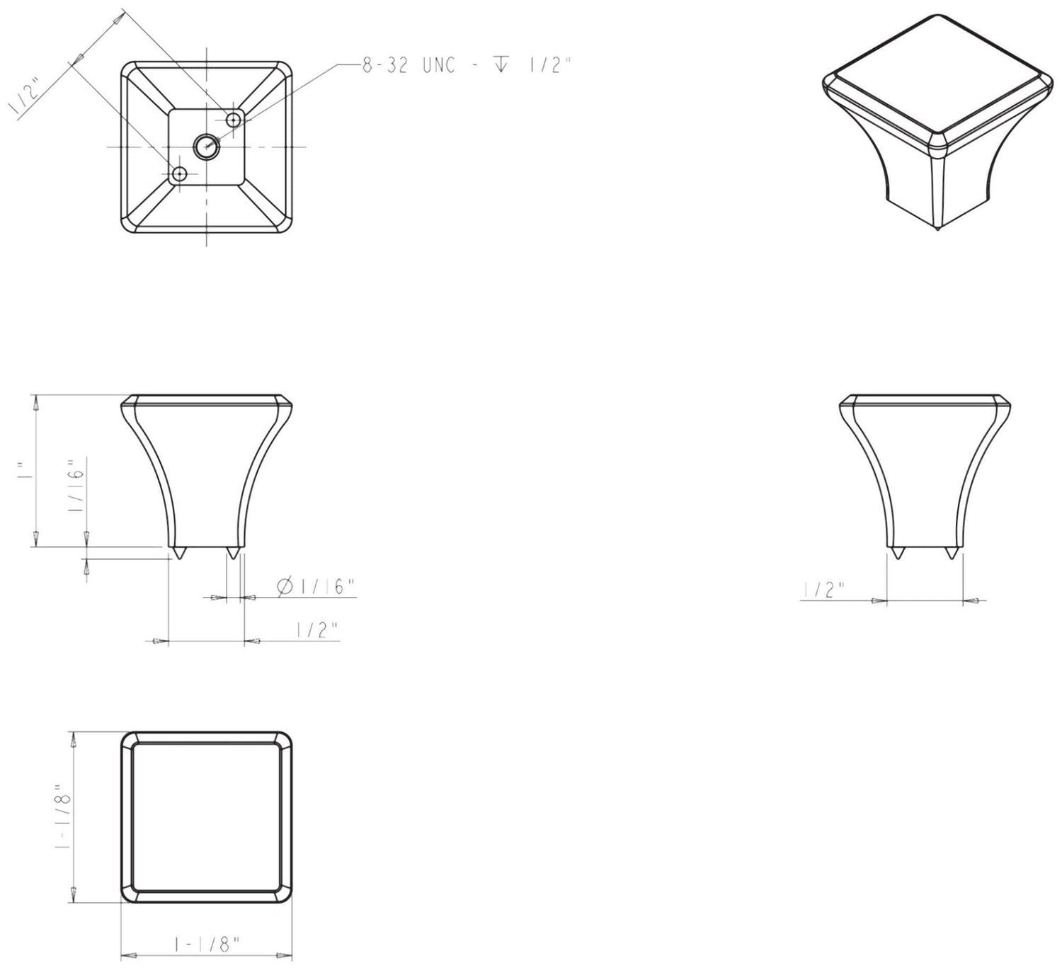 Jeffrey Alexander 972BNBDL 1-1/8" Overall Length Brushed Pewter Square Marlo Cabinet Knob