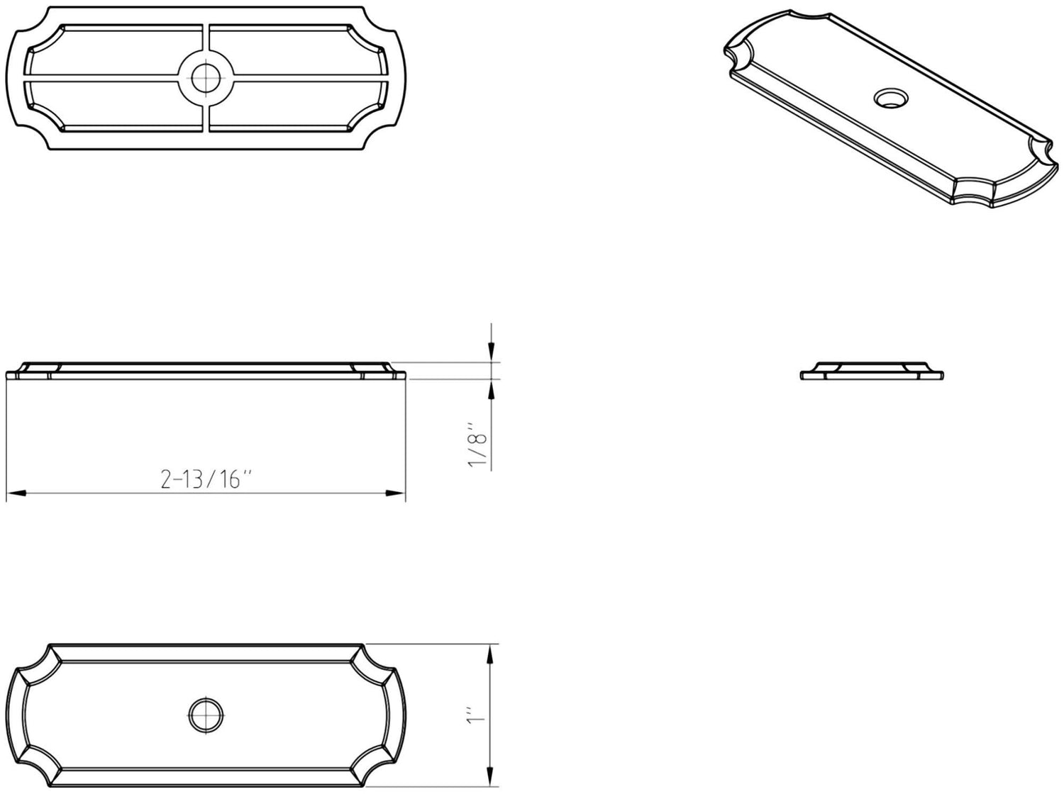Features: High quality finish resists rust and tarnish through daily use All metal construction for increased durability Covered under a limited lifetime Specifications: Width: 2-13/16" Height: 1" Projection: 1/8" Material: Zinc