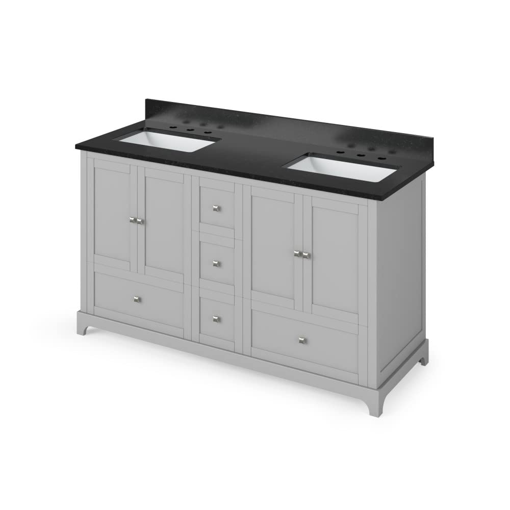 Jeffrey Alexander VKITADD60GRBGR 60" Grey Addington Vanity, double bowl, Black Granite Vanity Top, two undermount rectangle bowls